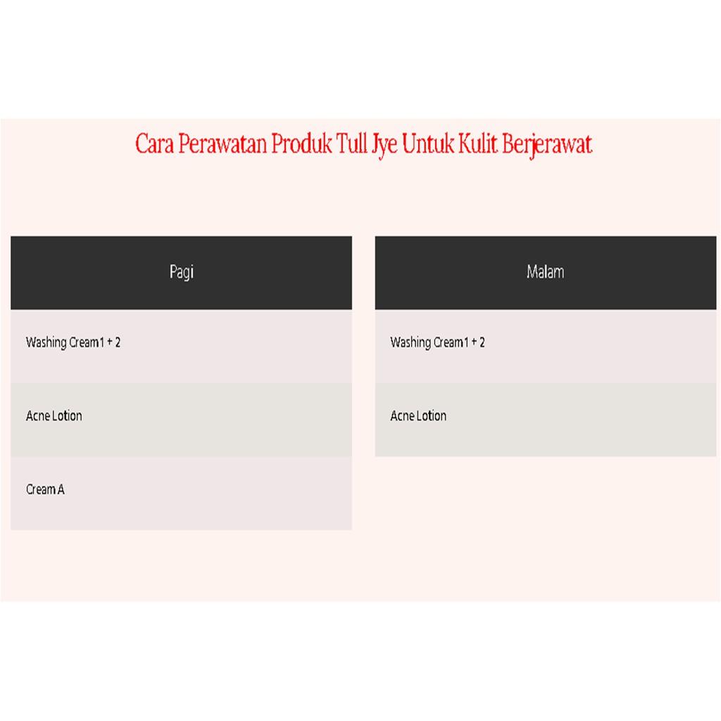 Digunakan pada malam hari setelah wajah dibersihkan dengan Tull Jye Washing Cream.